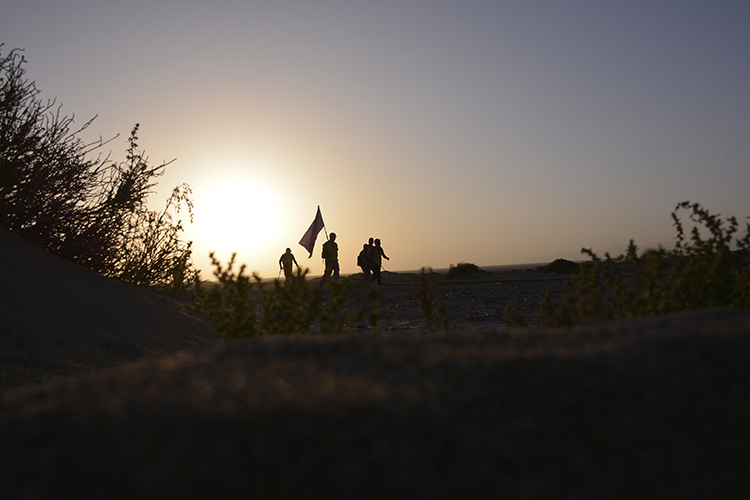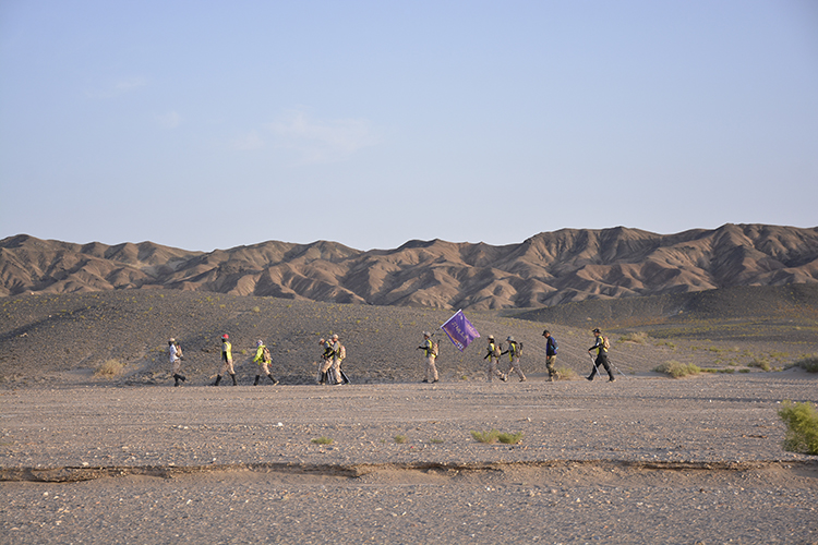 戈壁里的每一个清晨都是清新、明亮的,沐浴着朝阳出发,更是感觉富有生机、充满活力、充满着和队友一起迎接这一路上徒步挑战的勇气。