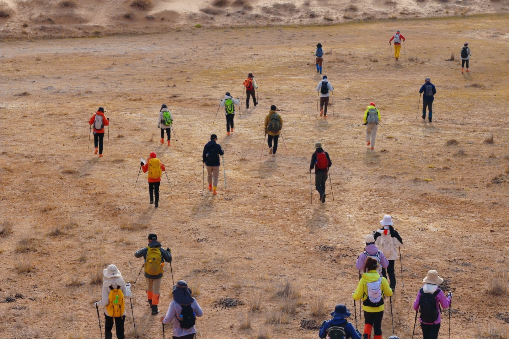 似乎碧草如茵的原野、溪水潺潺的林间,或者沟壑幽静的山谷,都是比沙漠更能够陶冶性情、觅得安宁的好去处。沙漠炎热、酷烈、干燥,连风也不够细腻,凌厉风沙磋磨人眼,超长待机时间的太阳将皮肤水分一点点沥干。所以一听是去沙漠,还要徒步行走一百多公里,立马在心中将这个魔鬼行程画了个叉。